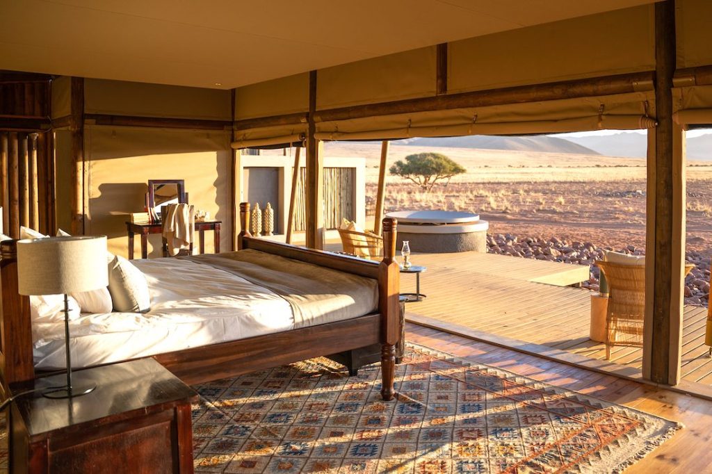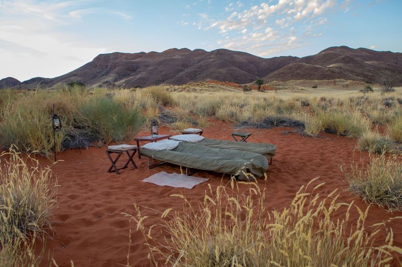 South of Sossusvlei and Sesriem is the beautiful sweep of the NamibRand nature reserve, sandwiched between the Naukluft Mountains and the sand sea. This area is utterly ravishing, and spans the full range of desert landscape, from deep red sand dunes, through golden grassy plains and far off-mountain peaks. Staying here is all about exploring your surroundings. And although it’s an over-used word, they are quite simply, stunning.