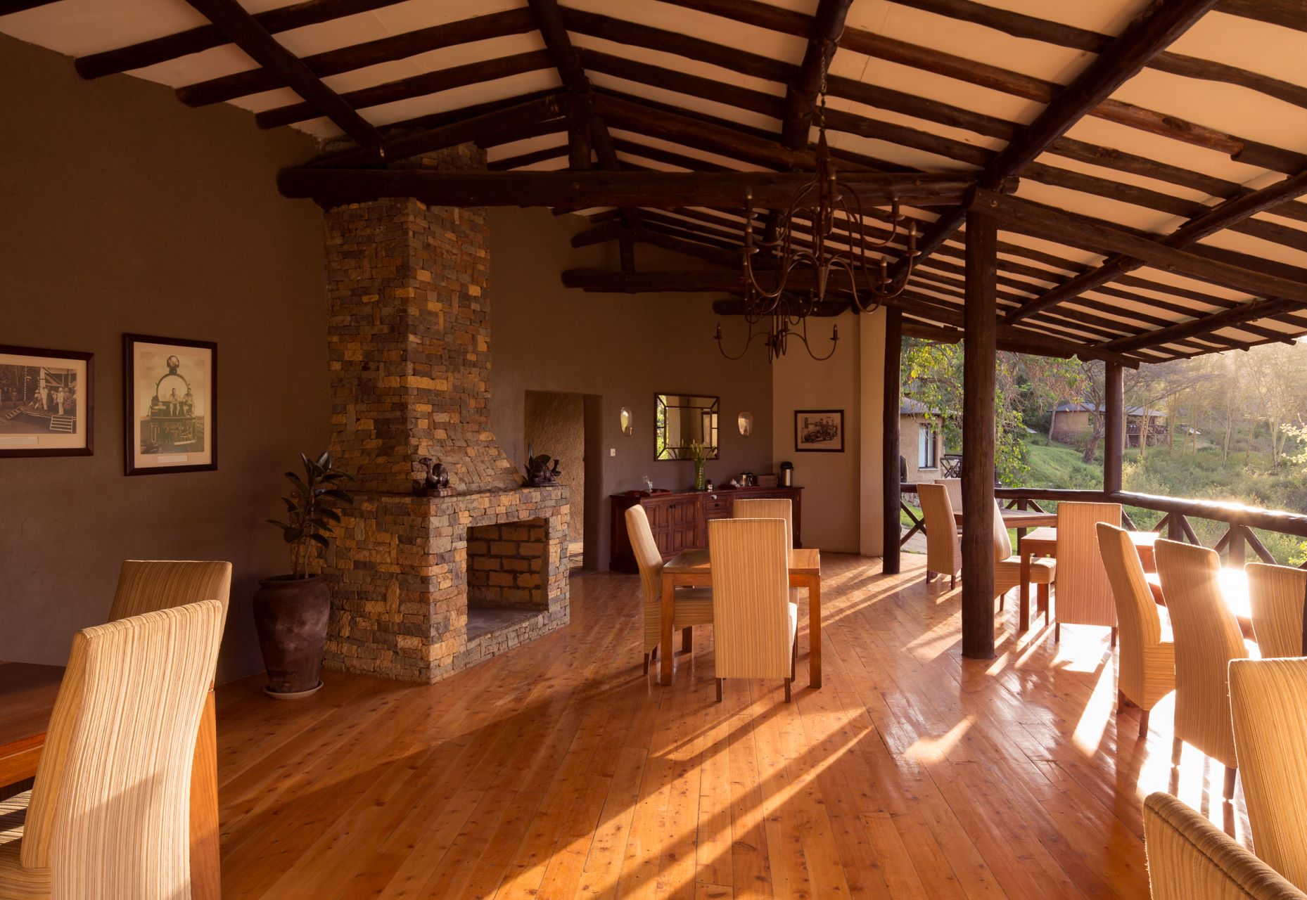 The adventure starts at The Emakoko as soon as you enter the lodge, crossing over from the vehicle via a small wooden footbridge. Rooms are built in 10 cottages, two rooms per cottage along the base of a small cliff. Five of the cottages are on the same level as the main area and five are higher up- these are quite a hike (we’d guess 80-100 steps) so please let us know if you have any mobility problems. For those feeling fit, or just keen to burn off some of the endless safari food, the walk to these rooms is worth it for the views alone. Inside you’ll find natural-feeling interiors with plenty of stone, natural wood and colours that reflect the bush outside. Each room has a verandah (for those views we mentioned earlier) and an ensuite bathroom. Over in the main lodge there’s a sitting and dining room, as well as a pool and a bar.