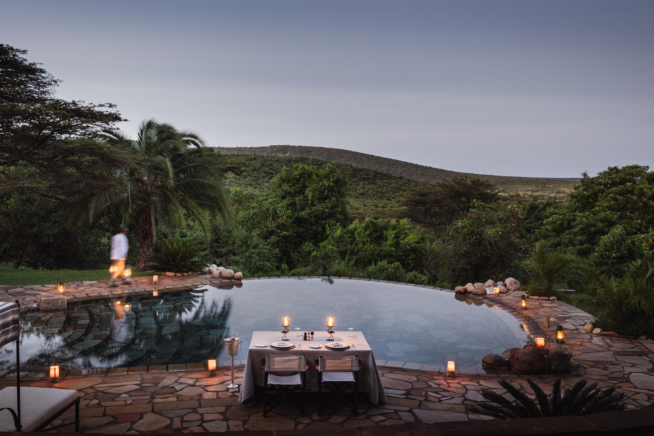 The main mess area of camp has antique furniture, and plenty of interesting objects reflecting the 1920’s theme, and a large communal dining table serving wholesome food with fresh veggies grown in the camp’s kitchen garden. There’s also a rather lovely pool for guests who want to take a dip in between game drives.