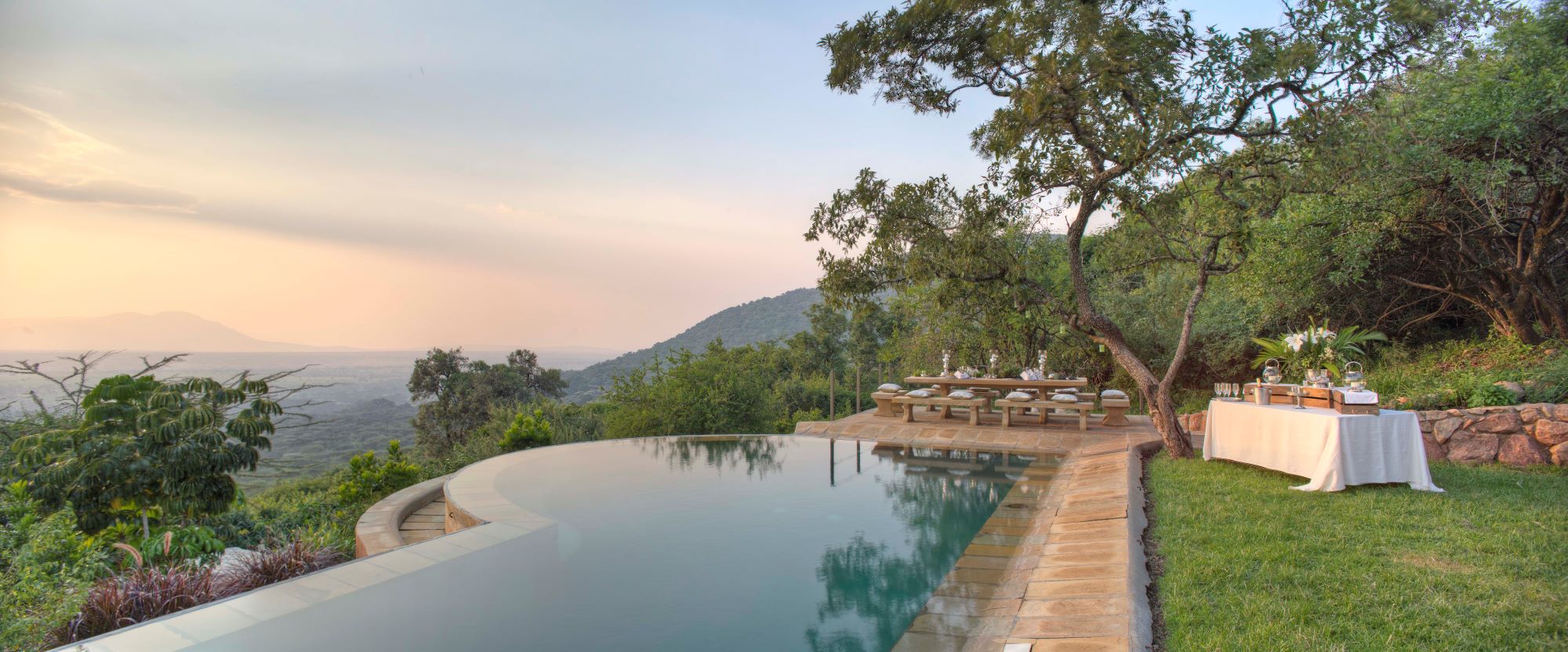 The main mess area of camp has antique furniture, and plenty of interesting objects reflecting the 1920’s theme, and a large communal dining table serving wholesome food with fresh veggies grown in the camp’s kitchen garden. There’s also a rather lovely pool for guests who want to take a dip in between game drives.