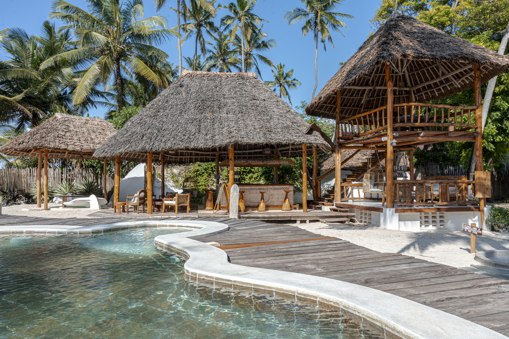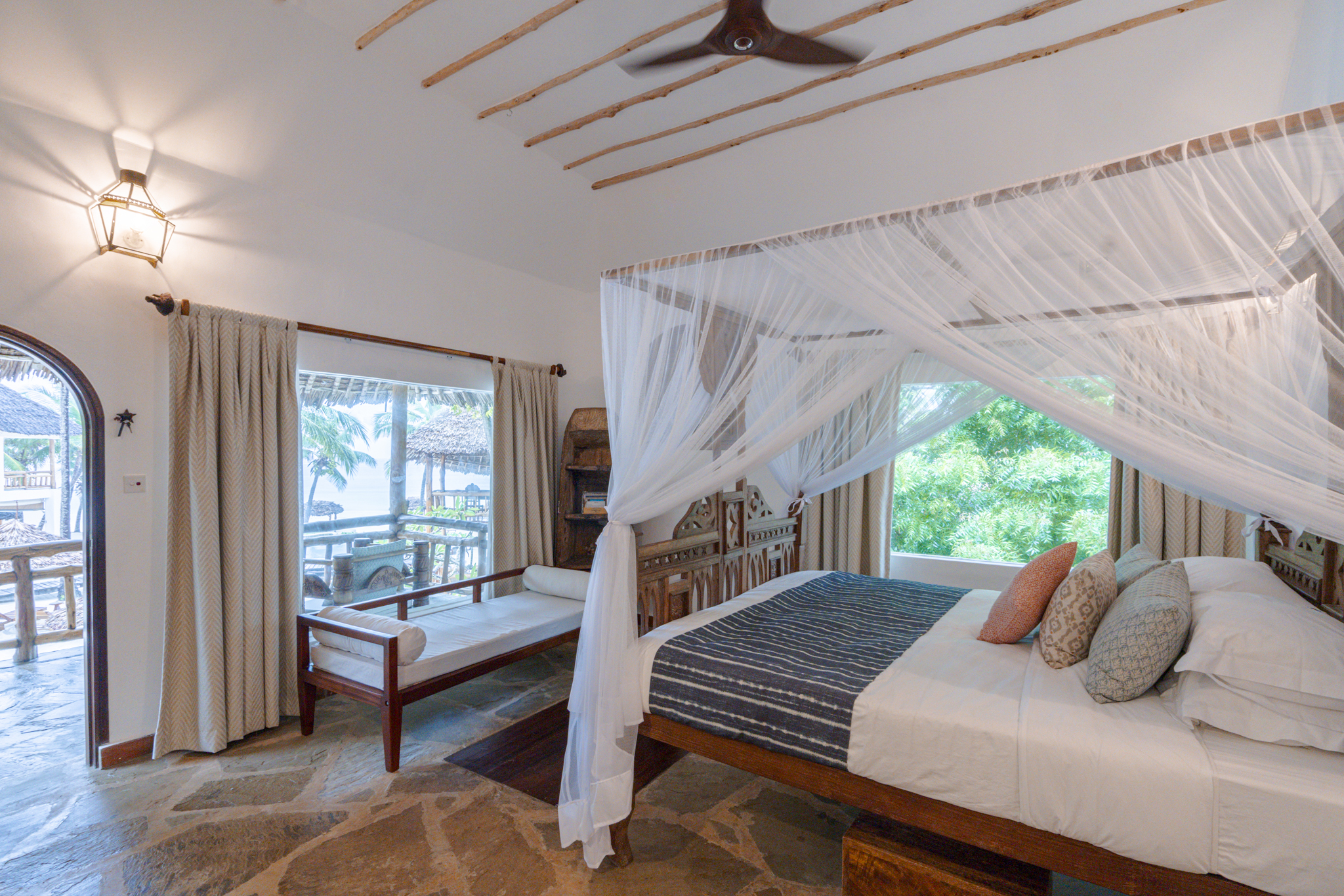 There’s one large private villa, and eight suites split between four cottages in the grounds. The decor’s typical of the East African coastline, with stone floors, woven rugs, and traditional carved wooden beds. Outside the rooms there’s a small verandah or balcony (depending on if you’re the upper or lower room in each cottage) which makes a lovely spot to curl up with a book.