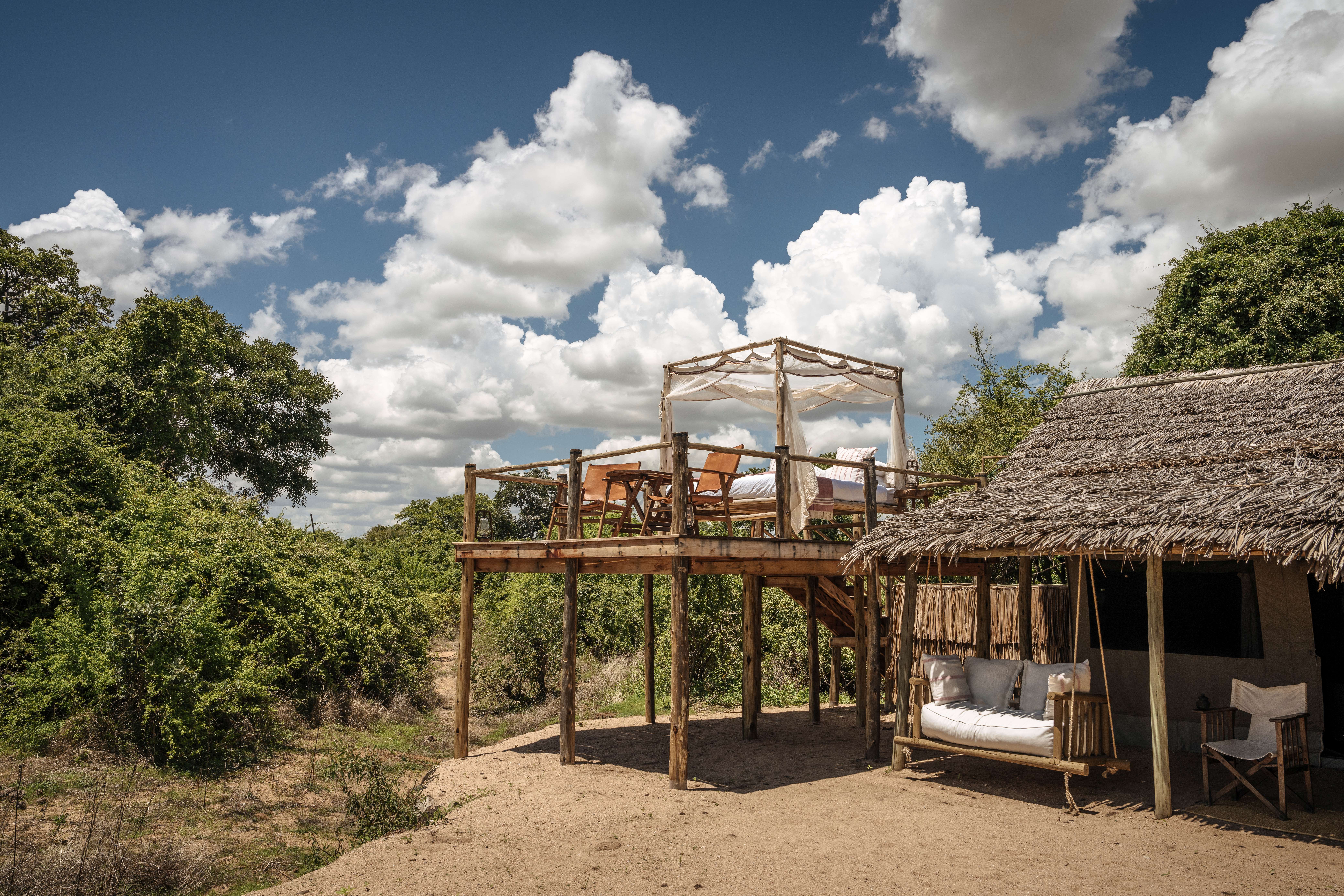 Kigelia is a camp for proper safari-lovers. The six large safari tents lie in a grove of sausage trees overlooking a sand river. They’re very comfortable, but unfussy- at Kigelia your luxuries don’t come at the expense of the wilderness, instead, they’re provided by it. Kigelia is in a fantastic part of the Ruaha for game viewing, with wide verandahs to enjoy the view from, and showers open to the stars. You have bucket showers and jugs of hot water to wash with, while lighting is supplied by solar panels, ensuring your footprint on this fragile world is a delicate one. Each tent also has its own star bed perched up on stilts for the option of a blissful night under the stars. Meals are eaten in the communal dining tent, or under the stars when the weather’s right, and your end of day sundowner’s drunk around a blazing campfire. And just occasionally, you might find yourselves surprised by a breakfast or sunset drink where you least expect it…