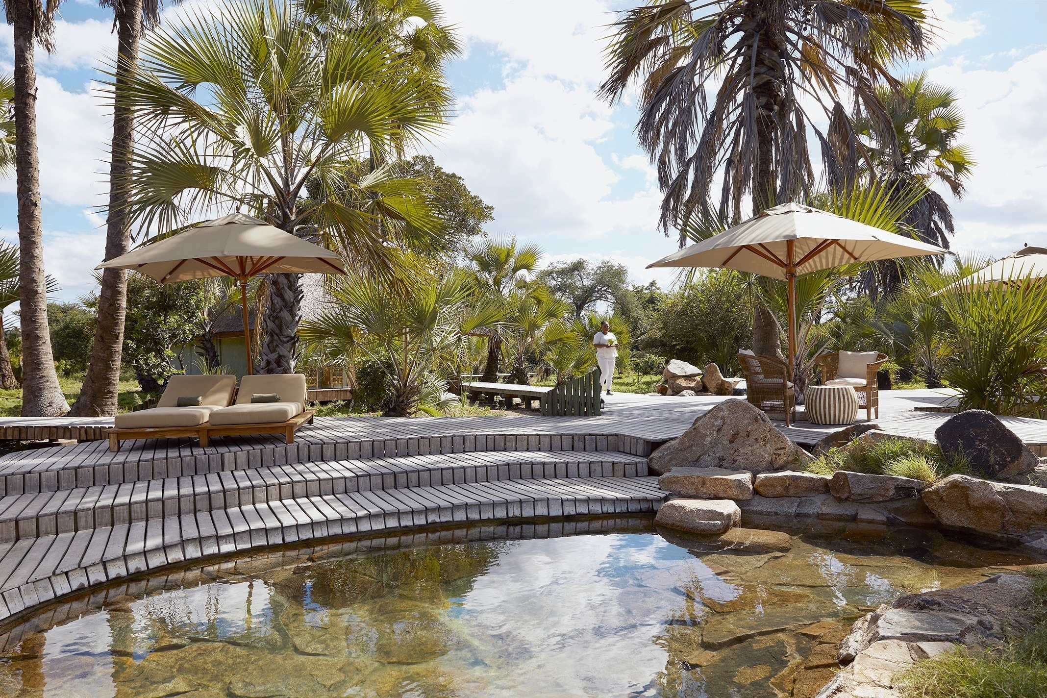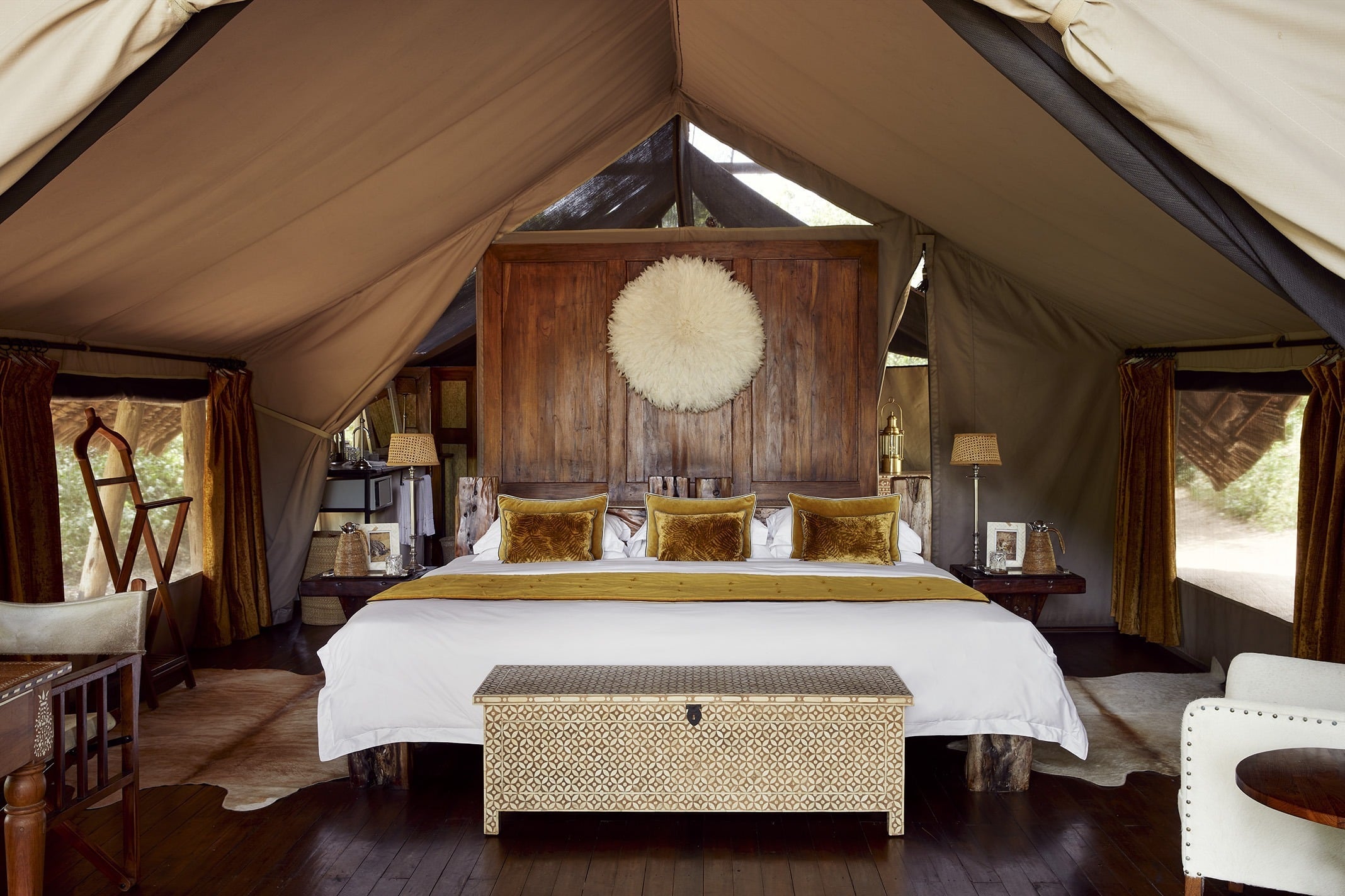The tents at Jongomero are rather delightful. Beds we could easily have slept a hippo or two in, beautiful ensuite bathrooms (tip from us: give the managers a few drinks and ask them if anyone’s ever tried to steal the sinks- an excellent story….) Over in the main mess area, tea-time cake is scrumptious, drinks are fun, and the plunge pool comes with the occasional ellie for company- what more can you ask for?!