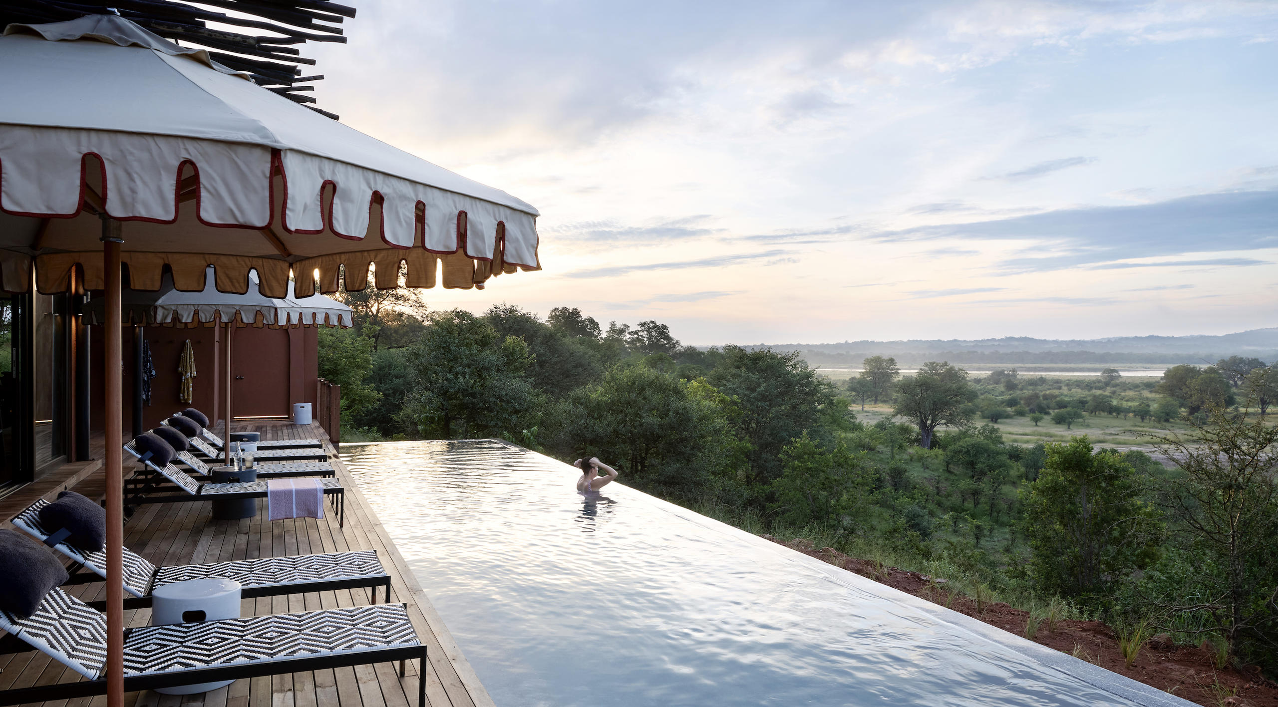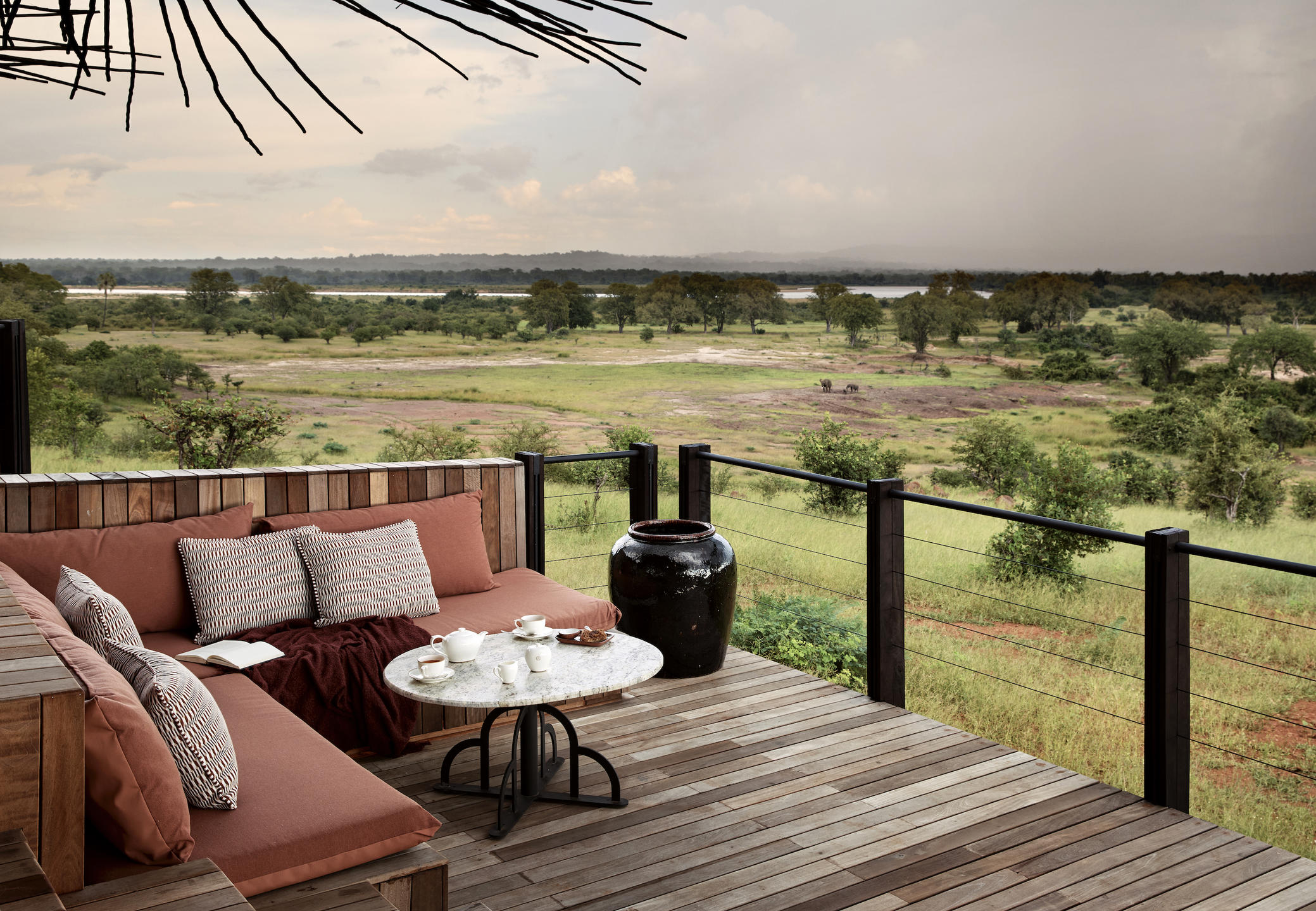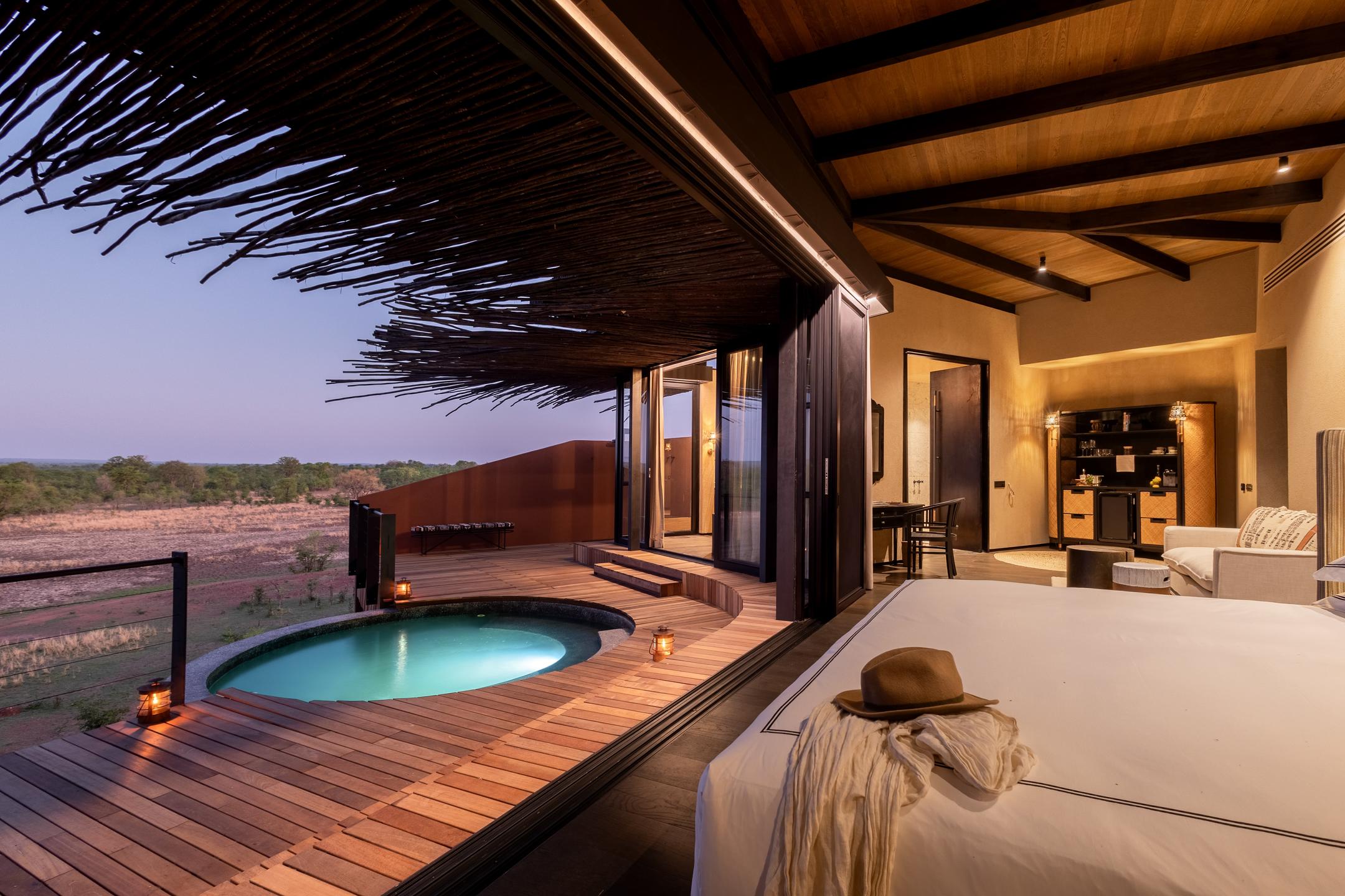 The brainchild of two experienced safari companies, Chichele Presidential Lodge opened in 2025 as a complete reimagining of former President Kaunda’s hideaway, built here in the seventies. Unsurprisingly, he bagged a fabulous location in the heart of the national park, so now the ten Vista Suites frame some of Zambia’s most spectacular views, with gorgeous decks to lounge on and private plunge pools that seem to float above the valley. Indoors, the suites are open plan with a bedroom and spacious bathroom with indoor and outdoor showers, double basins and bath, all fronted by tall glass sliding doors. In a departure from Zambia’s more traditionally rustic offering, the décor is contemporary, embracing a modern palette inspired by ‘chichele’ – the Chewa word for ‘salt’ (and its complement, ‘pepper’). This is not a spot for reed and thatch huts! Expect sumptuous linens, handcrafted details and a sense of calm, monochromatic style. Every detail – from the filtered drinking water system to the pure cotton linen – has been considered with comfort and sustainability in mind.