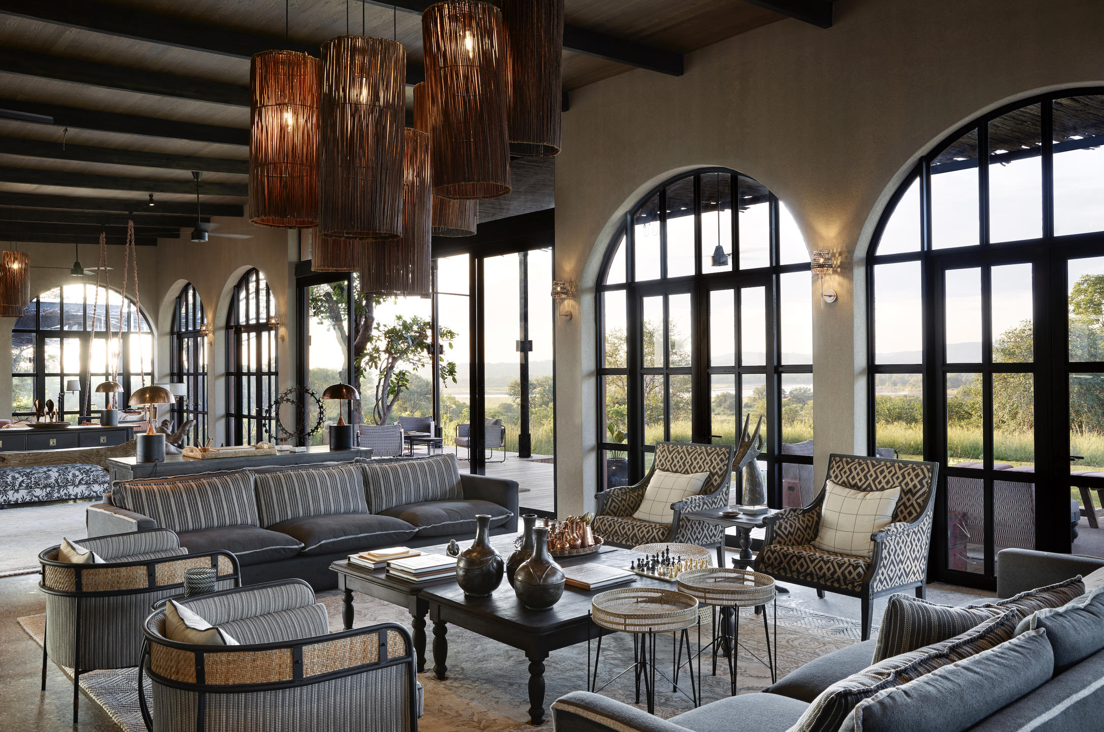 Over in the main area, there’s an impressive copper bar along with a well stocked library and an expansive deck complete with firepit and fabulous views, where there will often be a BBQ or freshly made pizzas on offer. A gym, yoga deck, safari spa and a rim‑flow pool that mirrors the sky completes the line up.