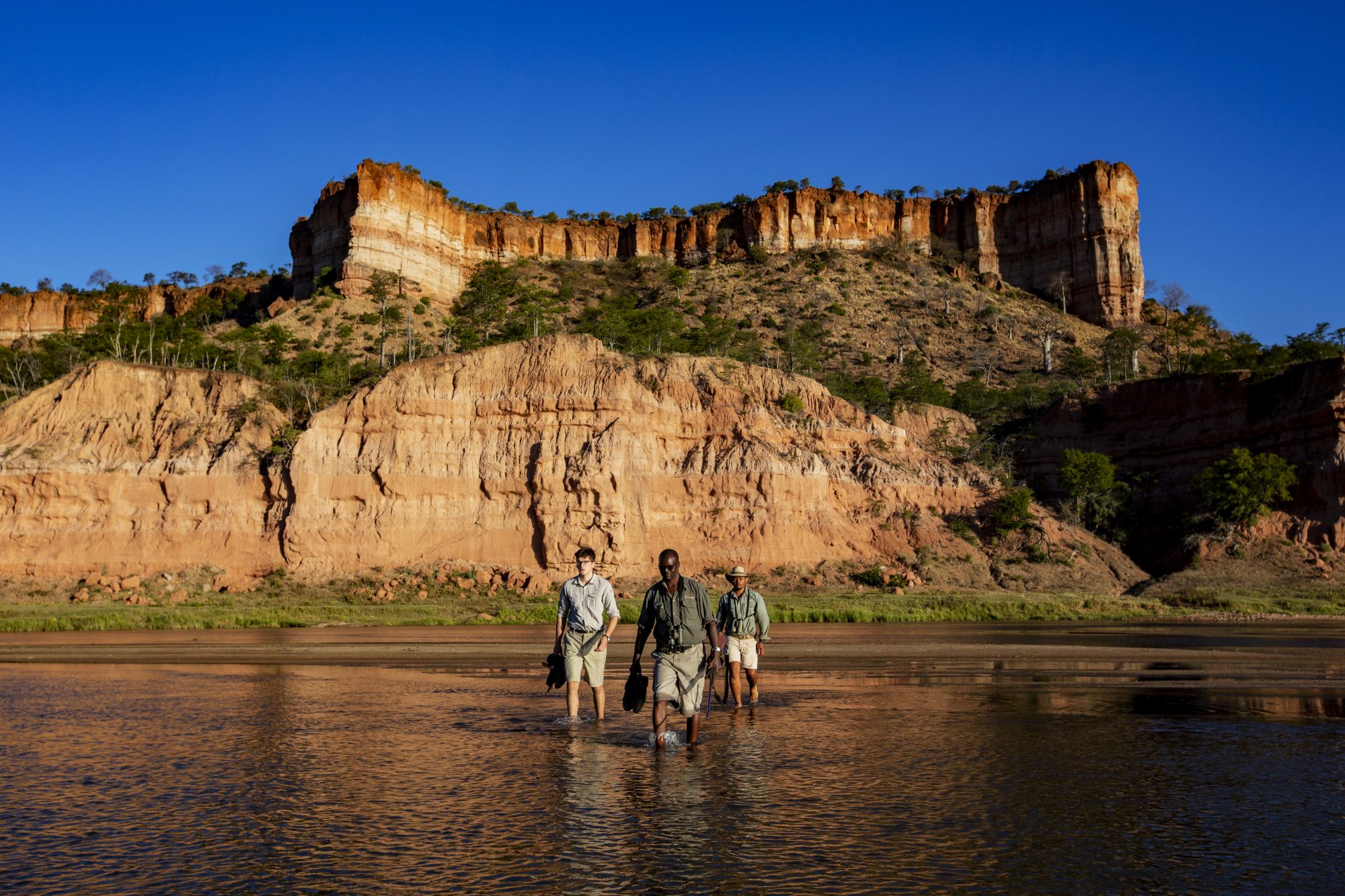 It’d probably be fair to say that you don’t get the sort of big game experience in Gonarezhou that you might in the better-known parks further north, and yet game drives here are often rewarding, with good elephant sightings, a huge variety of antelope, and excellent birding. If the river is high a boat may be needed to cross the river into the reserve. There are also excellent walking safaris (for over 12s only), hikes to Chivalila Falls, as well as all day trips to see the spectacular Chilojo Cliffs. Lastly, we’d heartily recommend a visit to Mahenye Village to experience a little of local life and the vital role of the community in conservation.