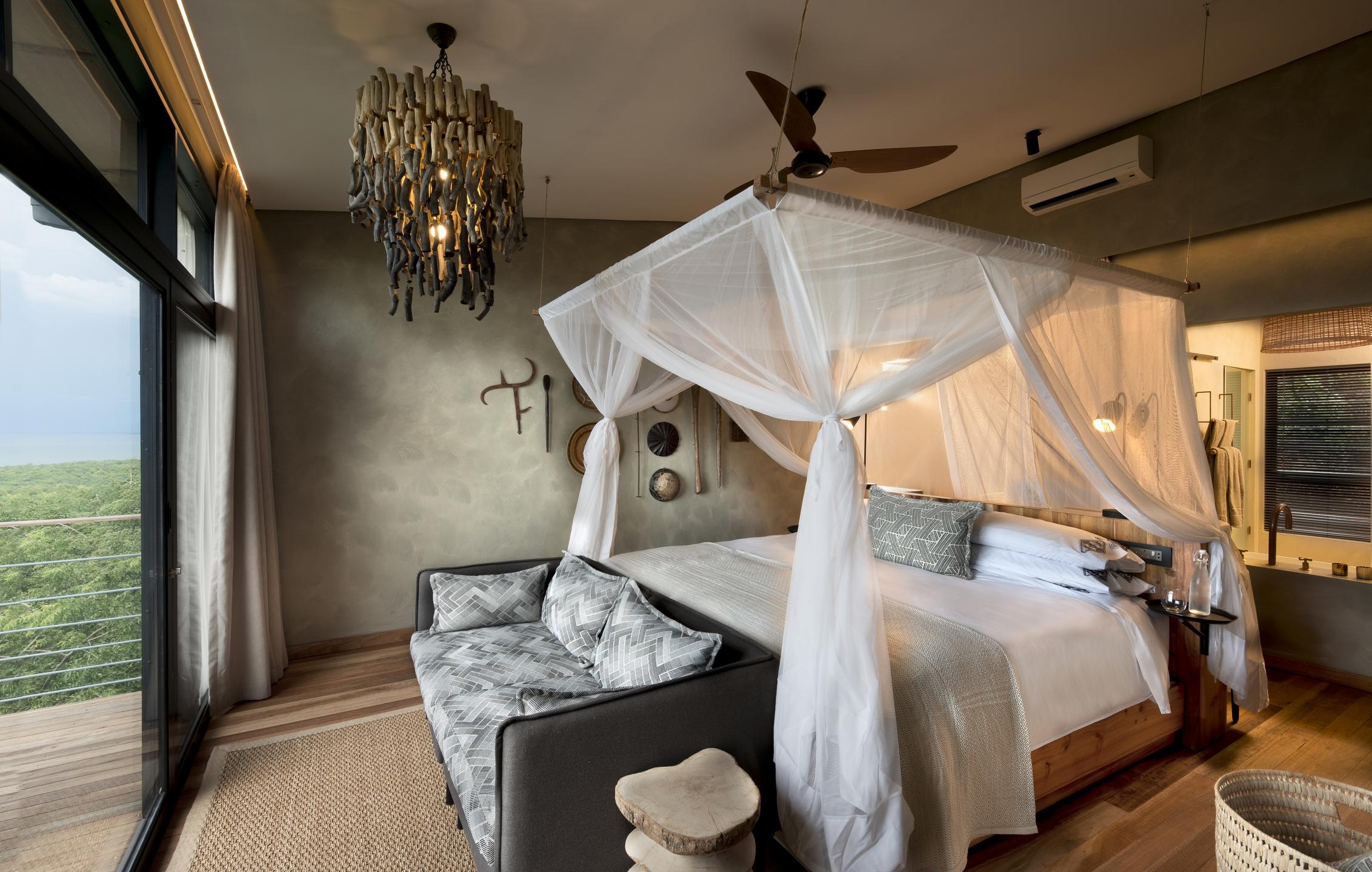 Stretching away from the main lodge, each of the ten suites looks out over the lake, famous for its thunderstorms crackling across the water. All of the rooms are air conditioned, and have a private balcony. Beds look out towards the lake with the bathroom set back behind. There’s also the two-bedroomed Baobab Villa which has its own living room, dining deck and private vehicle, making it an excellent option for a family safari.