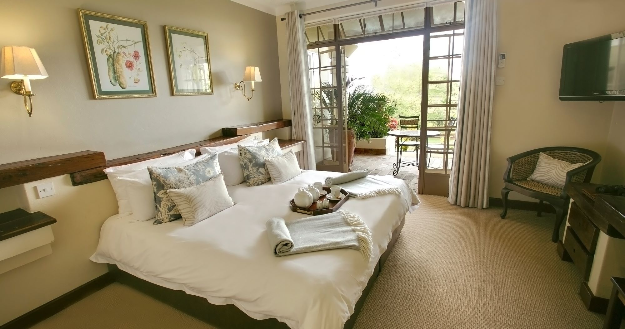 We’ve always found Ilala Lodge to be a safe bet for Extraordinary Africa guests. It’s close enough to the falls that you can see the spray, there are warthogs and baboons scampering over the lawns, and the food is consistently reliable. With 73 rooms, it’d be fair to say that this isn’t the most intimate option in town, but nevertheless, Ilala retains the feel of a friendly 4* hotel. All rooms are air-conditioned and with en suite shower rooms, and have a small seating area outside. Deluxe rooms are a little larger and (we think) more stylish than standard rooms. It’s worth knowing that most rooms have twin ¾ beds, but if you prefer a double bed, please let us know and we will request these for you. Suites are larger – standard suites have an extra bed, executive suites have an extra sitting room, and the Strathearn suite has its own kitchen. All suites have views towards the falls.