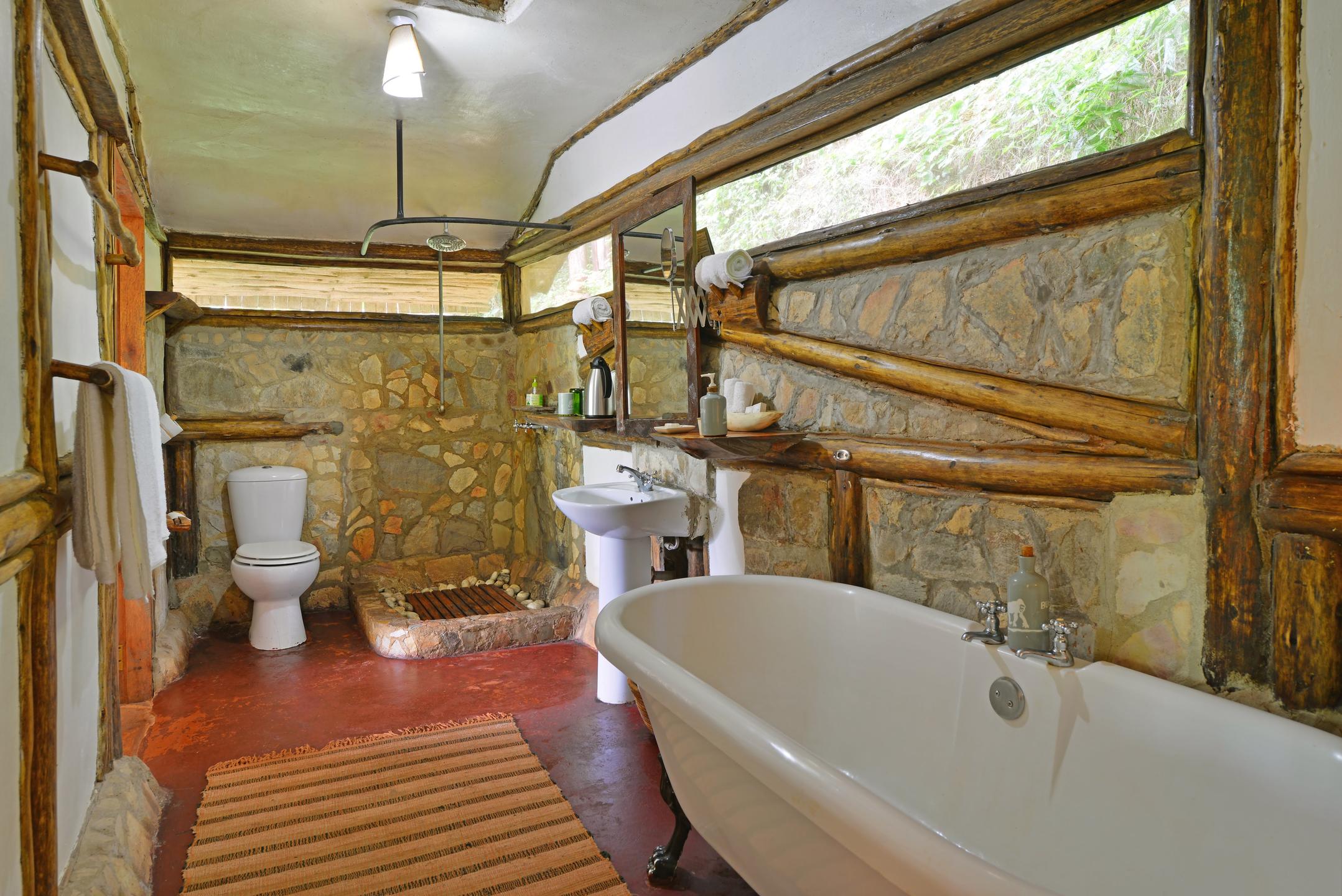 The rooms at Buhoma Lodge are all decorated in a simple, natural style, with an ensuite bathroom to the rear (all rooms have a large shower with piping hot water and some also have traditional roll top baths) and a small verandah in front. Your front windows are mozzie-net screens which keep out the bugs and mean you’ll fall asleep to the sounds of the forest, but it’s worth noting that it can get chilly up here in the mountains so warm jammies are definitely to be recommended.