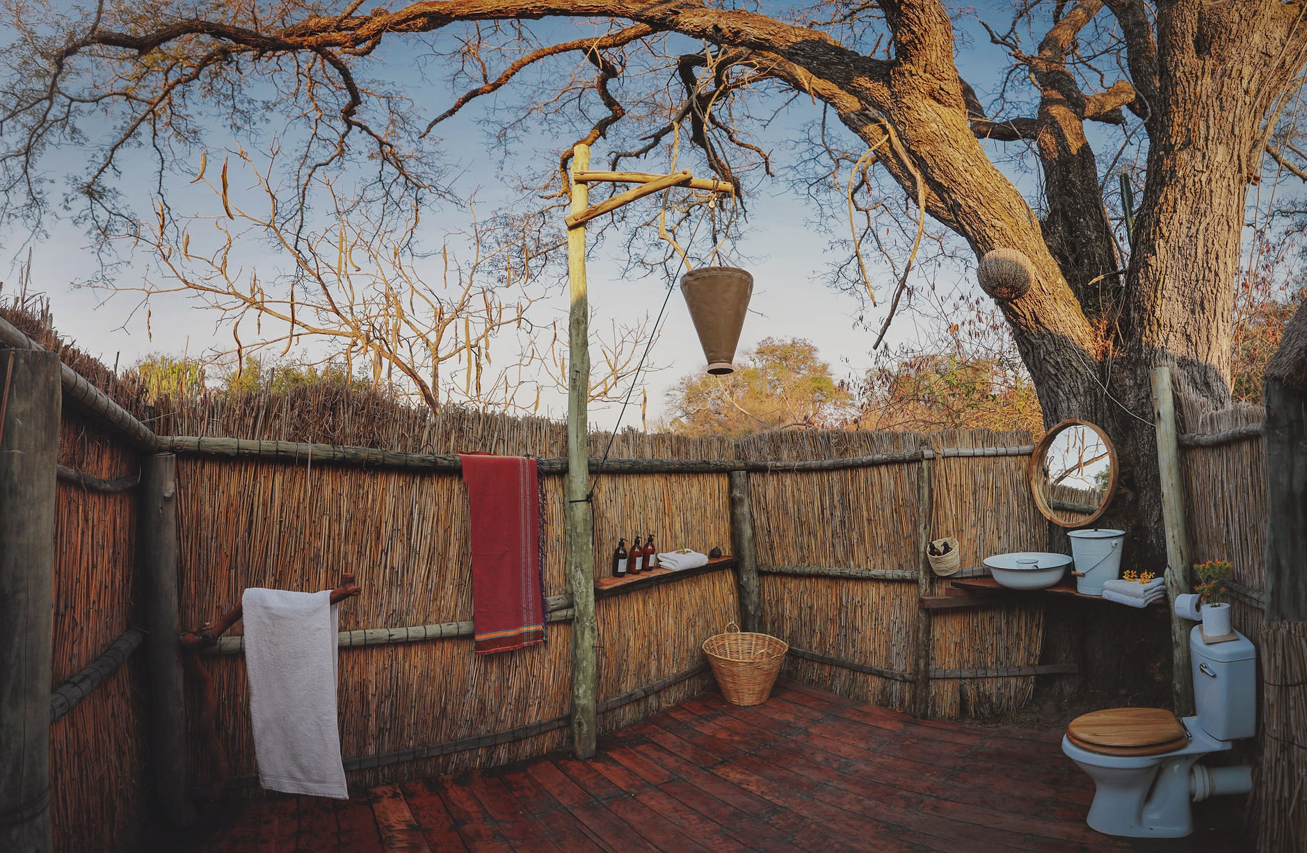 Zambia is one of the last remaining bastions of the true bush camp- built for wildlife lovers who adore nature and would be horrified at the sight of a tv or air-conditioning unit. Ntemwa-Busanga perfectly fits this model. It’s tiny with just 4 thatched chalets, so you have a thoroughly intimate experience, immersed in the bush with your fellow guests. “Rooms” have comfortable beds and open-air, ensuite bathrooms behind. Each has a flushing loo and a safari shower, with hot water delivered to your tent as needed (please just give the staff 20 mins warning!) The communal areas of camp are simple- if you are coming here, it is certainly not for the glitz, but something far more memorable. A stretch canvas roof provides shade over comfy chairs looking out over the plains and tables are set out around the evening fire.